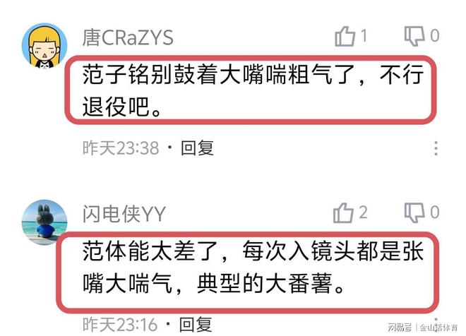 “范子銘別鼓著大嘴喘粗氣了,不行退役吧。”;“范體能太差了,每次入鏡頭都是張嘴大喘氣,典型的大番薯。”;“范子銘,你長點心吧!”……