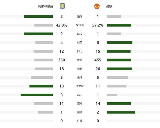 隨后曼聯(lián)大舉反撲,第66分鐘庫尼亞近在咫尺的頭球攻門偏出立柱,第81分鐘曼聯(lián)進(jìn)攻造成維拉球員禁區(qū)內(nèi)手球,但主裁判沒有任何表示,傷停補(bǔ)時階段,芒特的任意球直接轟門高出橫梁,最終紅魔只能接受兵敗維拉球場的結(jié)果。